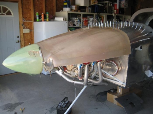 Cut some PVC pipes 4" long as a substitute for the prop spacer and put the spinner and cowl top in place so it could be marked and trimmed.