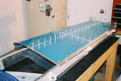 Match drill Right HS skin to front spar. Deburr both. Deburr skin
