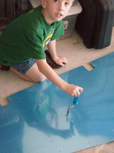 I actually screwed up match drilling one of my rudder skins so I let Kyle "help" one day by deburring it... Thanks to Darrell Reiley for hooking me up with a free oops replacement!