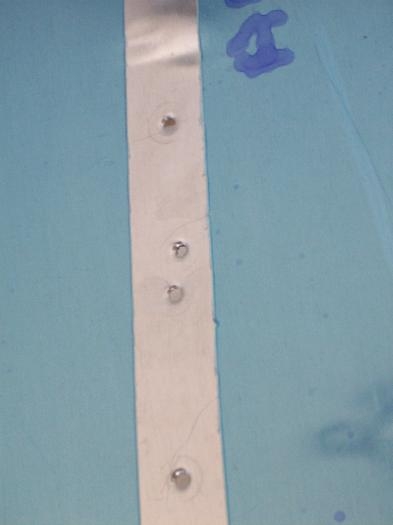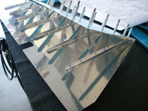 Finished cutting and preparing the Right Stiffners using band saw, files, scotchbrite wheel, and sandpaper roll. Match drilled them to Right elevator skin. Deburred holes. Dimpled stiffners and Skin with DRT-2. On one of the holes, the skin popped out of place as I was dimpling and punched an extra hole in the skin :(