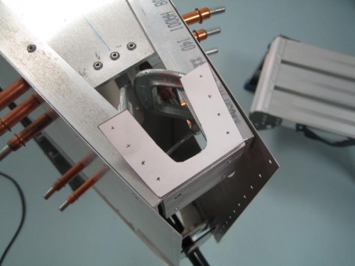 Installing vertical and horizontal stabilizer. Focused on anchoring vertical stabilizer in position.