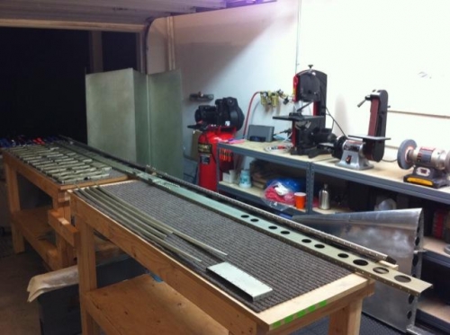 Front and rear spar and stringers were countersunk. All surfaces were scotchbrited, cleaned, and primed.