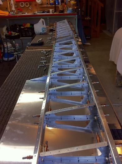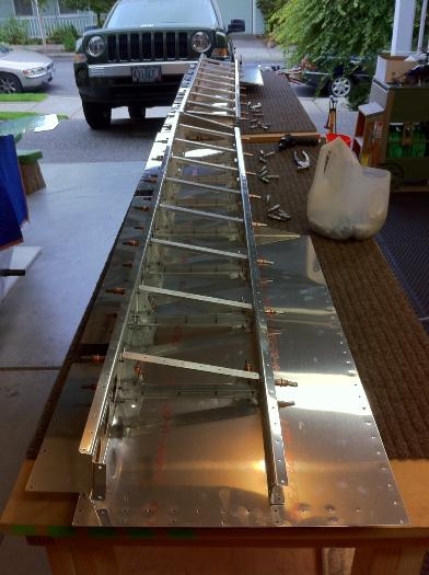 Top and bottom elevator skin tabs were bent as prescribed. 5/8" holes were drilled for the trim cable and a portion of the skeleton was prelimenary assembled.