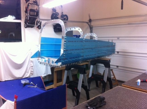 Left skin, stiffeners, and rudder brace
