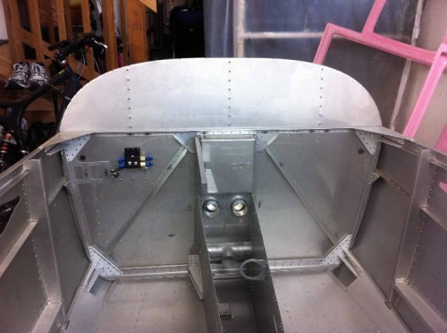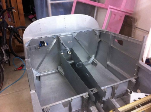 Further work on the empennage tips. Right brake line was bent. The QB disassembly of the fuselage continued.