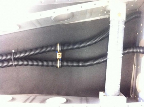 Click bond standoff fasteners were adhered to the internal side of the lower skin. Adel clamps were mounted on these stand offs.
