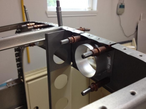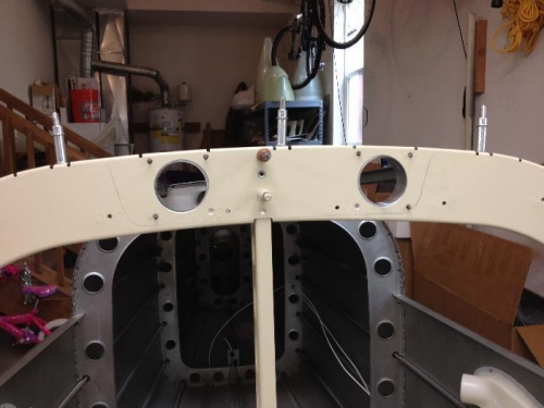 Holes were drilled into the rear bulkhead to allow air to pass from the exterior NACA vents into the overhead console. This ram air will "pressurize" the OH console for passenger air/ventilation.
