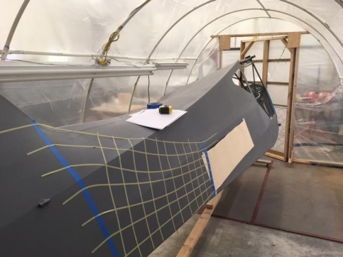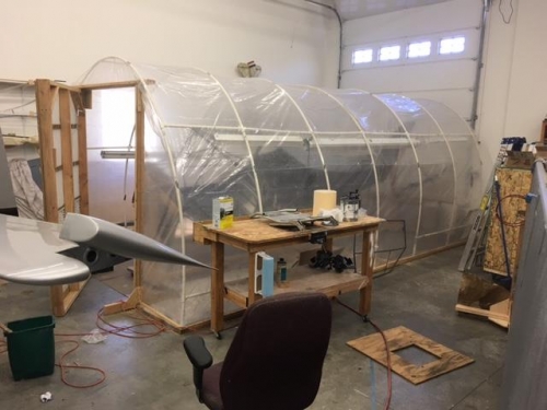 All the fabric is complete with the first coat of Ekofil. Built a spray booth, actually the same one I used to paint my RV-10 except reduced in size. I gave it away after that paint job but got it back for this one. It will be cut down in length after the fues, wings and flaps are painted.