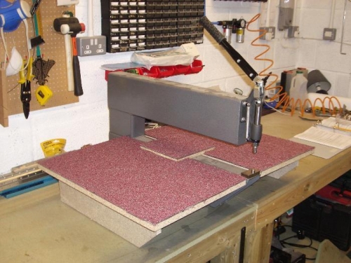 It's getting close to the time that I'll be preparing the HS skins, so I can't put off a bit of carpentry any longer. A few pieces of chipboard and some carpet tiles later, and I had just the thing.