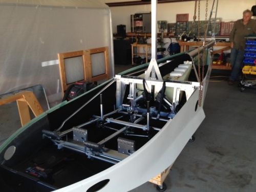 It's here! The "big" day,, This is where I drop the fuselage frame, into the hull!