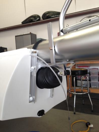 Installed the two Hull Transom Angles, and elevator push-tube boot, At first I felt I over did it with the white RTV sealant,, until my visit to the PA factory, and took a look at the LSA hulls, and how they were sealed. I think the factory uses an entire tube of sealant back there! Which, is a good thing!