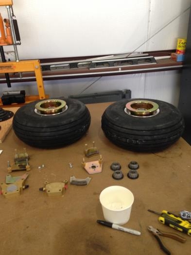 Started the assembly of the MLG, beginning with building up each of the wheels with the Matco hubs & brakes