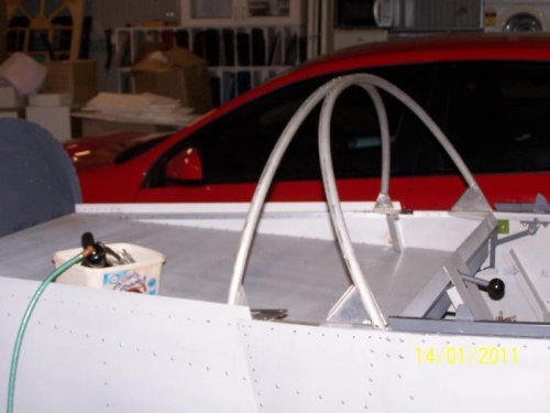 Fitted two front rear skin tubes 6B21-1 &2. Made up and riveted on gussets and shoulder harness brackets.