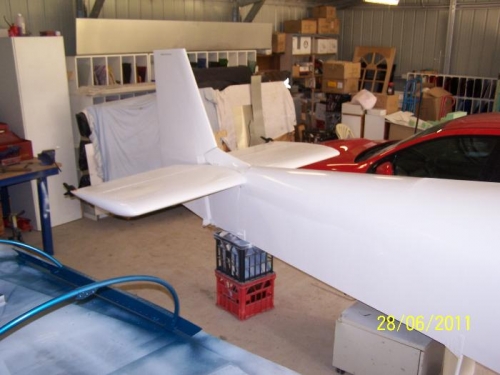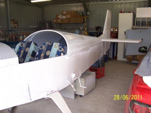 Preparing and painting main fuselage using LPHV spray gun. Extremely hot and humid conditions and trying to learn to paint mean a lot of sanding of runs and having to fix up at a later date when its a bit cooler.