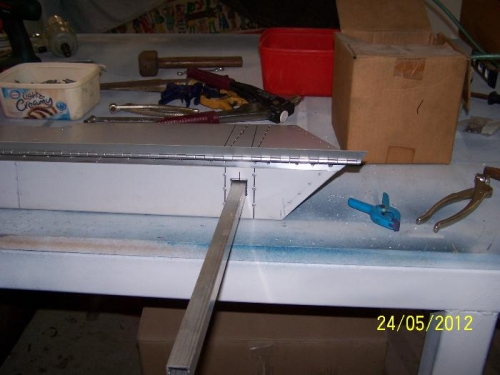 Completed upgrade to left aileron. Fitted new ribs and tube for mass balance, also fitted trim tab and ray allen trim motor. Changed from flex hinge to piano hinges to accomodate mass balance design.
