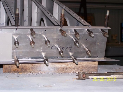 Added 6-ZU1-8 and -7 to rear spar and also 6-ZU-1-6 angle to full length of top rear spar. Replaced aileron bellcrank with 6-ZU-3-1, also added L angle to bottom skin. Started on L/H wing locker rear panel support.