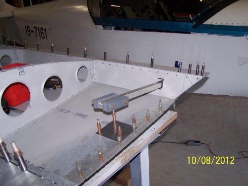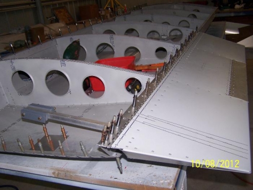 Cut up 6mm flat bar, primed and drilled to aileron balance bar. Fitted extra plate below weights to bottom skin.