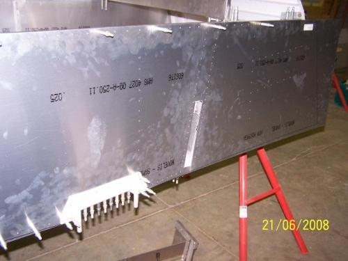 Fitting side skins and cutting out gear channel and wing spar cut-outs. Also fitted gear channel support bracket.