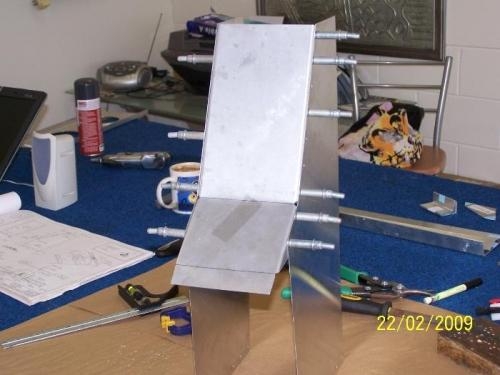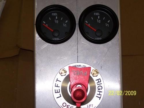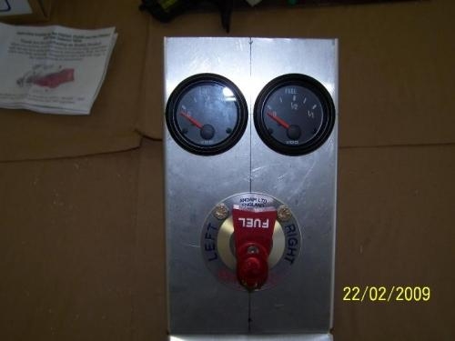 Fabricated centre console, and fitted fuel gauges and Andair 3 way fuel selector valve. Ready for painting and riveting.