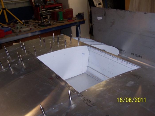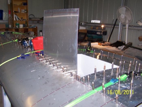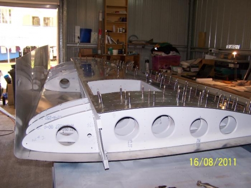 Fitted nose skin and drilled/cleco'd together. Started fitment of wing locker.