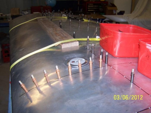 Fitted fuel level sender to top of tank, glued cork strips and fitted to leading edge skin.