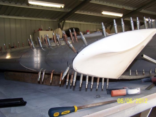 Completed fitment of fuel tank and fuel filler. Fitted fibreglass wing tip and drilled aileron hinge to wing after making cutout for aileron balance arm