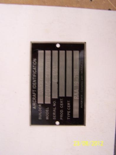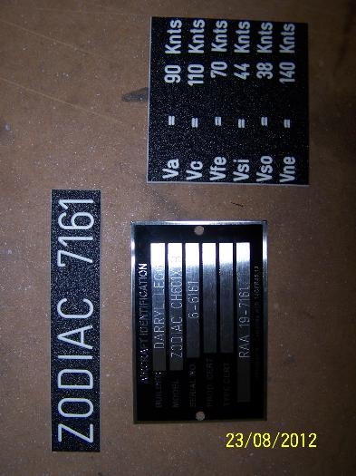 Fitted ID tag under LH stabilizer and V speeds and call sign next to Efis in cockpit