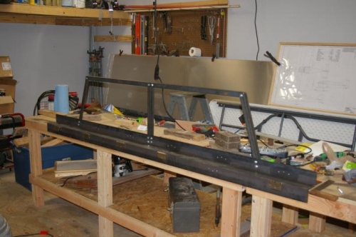 Continued work on the sheet metal brake. Fabricated handle out of two 6 ft pieces of 1.25" x 1.25" x 1/8" angle iron. Cut peices with side grinder with a cut off wheel. Debured with a wire wheel in a bench grinder. Drilled bolt holes and debured. Assembled wirh 1/4" bolts, flat washers and stop nuts.