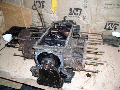 The Corvair engine that will be used was picked up. The initial disassembly was started, to the point that all of the stock baffling, the heads are off and the blower fan is removed.