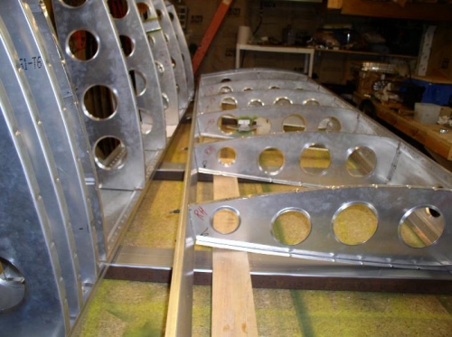 12/21-12/22 The reinforcement doubler was laid out and fit to the rear channel.(Rear spare) The rear channels drilled and clecoed to the wing frame work.