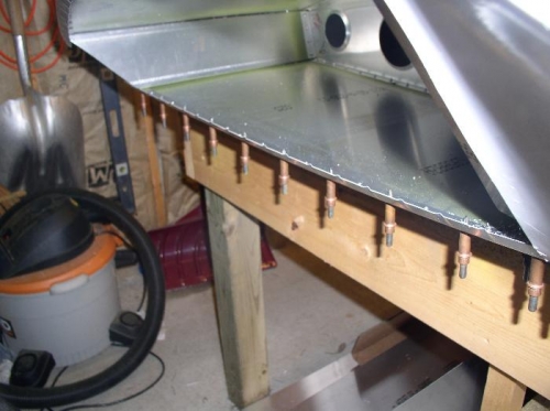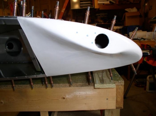 5/23 - 5/26 The rh wing tip was completed. The angles formed. The fiberglass tip installed, and the end sheet fit and installed. The nav light was also installed in the fiberglass tip.