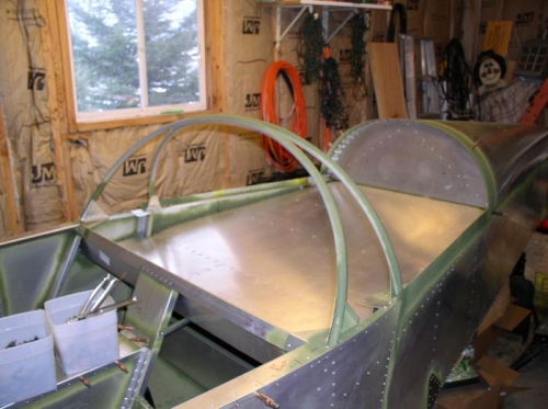 12/22-12/27 The top skins where removed all deburing was done. The skins put back into place and riveted. The shoulder harness bracket was also completed.