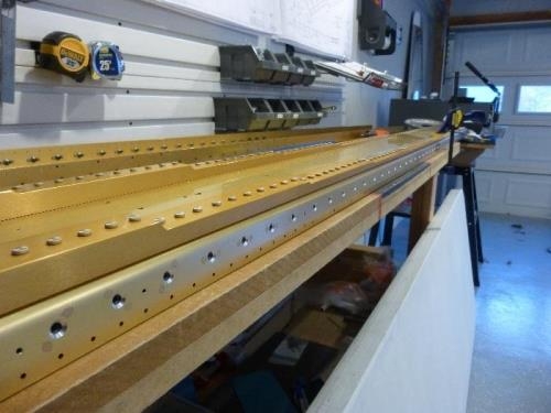 -Continued to prekote ribs. -Match drilled right wing skeleton. -Disassembled right wing skeleton & hole deburred ribs & spars. -Counter sank left main spar for #8 tank attach screws. CounterSank till the CS was .365" diameter.