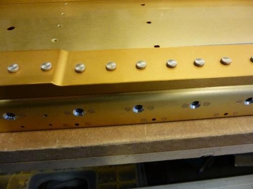 - Started countersinking right main spar for #8 fuel tank attach screws.