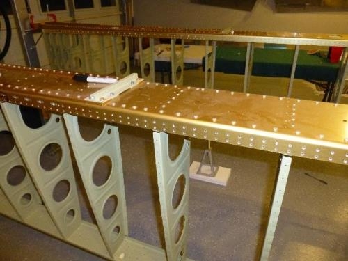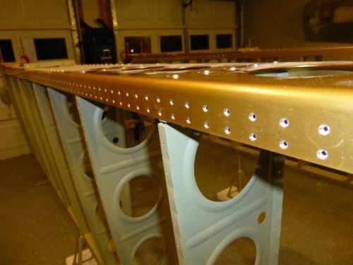 - I'm currenly in the middle of hole deburring & dimpling the wing skeleton. What a mondain task!!!"