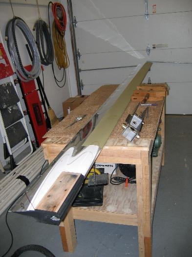 Rearranged workshop for painting and main rotor blade trimming. Started on first rotor blade. Trouble assertaining where the center of cordline is.