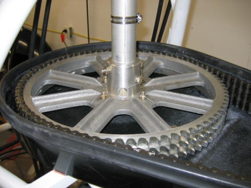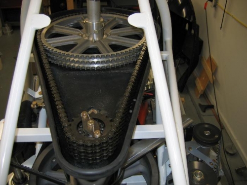 Installed chain and safeteed all of the bolts in the chain oil bath. Test fit and moved metal tie-wraps on exhaust header. Trimmed and installed main shaft safety spacer.