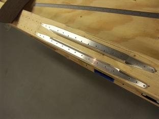 Clecoed HS-710 and 714 angles to Hs-702 front spar. Final drilled holes inboard of the designated holes. Removed and used bandsaw to remove material and final ground on scotchbrite wheel and radiused ends of angles. Time to bend the 6 degree angle but having a hard time to decide the right spot.