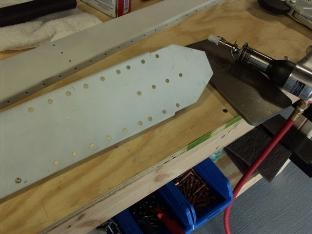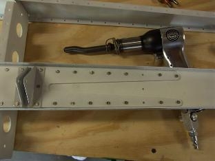 Primed the VS ribs. Clecoed the ribs to the front spar. Clecoed the rear spar together. Finally FIRST RIVETS! I started with the flush rivets in the bottom of the rear spar. I used the flush rivet set in the gun and the flush rivet plate to buck. Worked great. I used the Main Squeeze on the rest. You have to really pay attention to the rivet call outs here. Glad the instructions said to use tape on the holes you don't want to do until later. It would be real easy to get going and do them all.