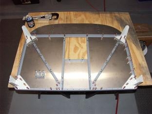 I borrowed Phil's longeron yoke to allow me to complete the dimpling of the firewall edges. Clecoed all the gussetts and angle braces back in place. Riveted the bottom edge of the firewall and startd up the leftside. I was backriveting when the steel plate underneath slipped and caused me to have to drill out a few rivets. I will just start over fresh tomorrow. Also received my new pneumatic squeezer.