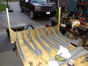 Completed the nutplates and clecoed and drilled the bolt holes for the seat ribs to the 704 bulkhead. Started riveting the seat ribs to the 704 bulkhead.