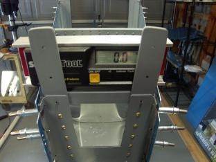 I could not get the line I drew on the JChannels to show up on the end bulkheads. Turns out that I left a small edge when I cut the them that is keeping it from moving into place. I had to uncleco and remove the JChannels and tweak the ends with the grinder. Clecoed everything back together and started to final drill the holes. I am starting on the upper JChannels first. Seems like that is what most folks are doing. I hung plumb bobs on both ends to keep everything squared up.