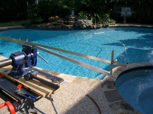 I had to remove the canopy decks to fit the longeron into the vise snug at the 28 1/4 inch mark. Thanks again to Dan's famous website, he said to use the same method you use to do the big bend. In this case you hold down pressure and outward pressure as you wack it with the deadblow hammer. The outward pressure is used to hold against the inward bend as the flat top area bends down. I used an angle clamped to the straight deck area to measure the 2 3/4 inch bend at the firewall end. Not quite enough on the first wack so remove the measuring angle and wack it again. Took about 3 attempts to get it right. Not to bad. Then last I used a large cresent wrench to put the 17 degree twist. Just put the wrench on the very front of the longeron and twist. I used an inclemometer to check for accuracy. Hopefully this will match up with the angle in the firewall brackets.