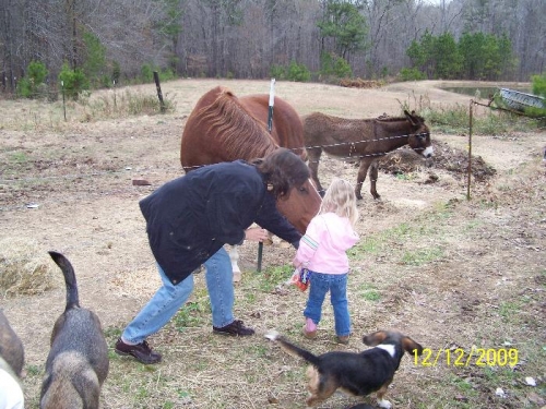 Went to Alabama for a week between Thanksgiving and Christmas. My grand-daughter Ellie as my sister in laws house - feeding horses.