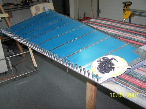 cleaned, pro sealed and clecoed trailing edge of rudder