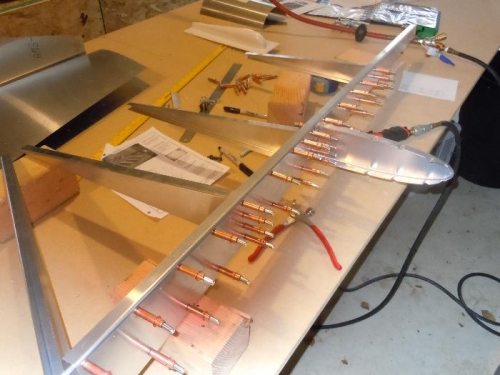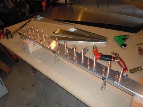Drill, Cleco and Deburr Rudder spar and ribs. Primed with Zinc Phosphate