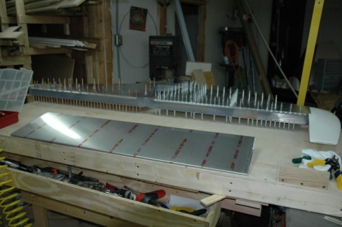 Drilled and riveted half of the elevator control arm miss-aligned the Elevator Root Rib. Ordered a new on from Sonex. Bad night