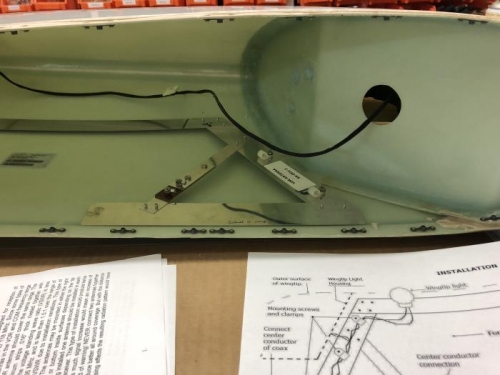 Finished rivetting the last wing skin. Filled small gaps between panels. Started to install the VOR antenna into the prot wing. Need to get some advice about routing the cables from the ZipTips light module.