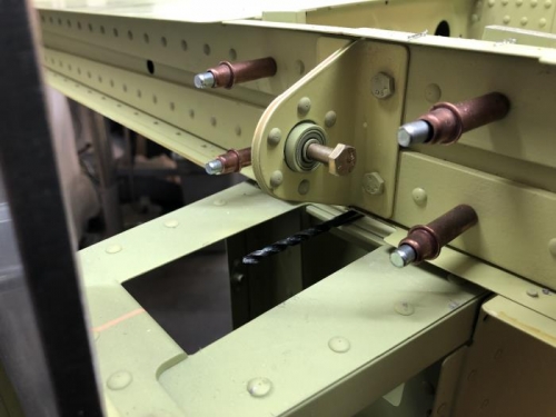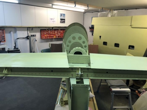 More prop on the throttle quadrant, but need the epoxy filler to cure fully before sanding and painting. Next step according to manual is to attach thr Horizontal Stabiliser. Fuselage levelled in bot planes, to within 0.1 degrees, and then the HS attached. Mounted a laser cross beam on the ceiling, and it made setting up easy. HS symmetrical on plan view to within 1mm and les than 0.1 degree incination and lateral tilt. Very happy! Drilling the rear bolts was easy, but getting the front bolts installed, getting edge distances right, and trying to drill perfect holes was a challenge. All lined up well, and feels absolutely solid. Will need some deburring and prep of the hole edges on the spar to ensure that there are no stress raisers, but overall all went well. Beter than the undercarriage attachment...