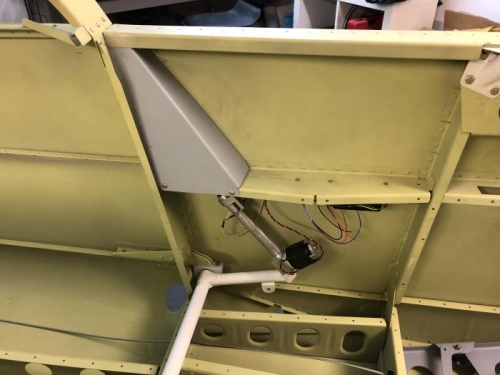 Wasnt very happy with the installation of the flap position mechanism fitted yesterday... the power cables could get snagged by the switch actuator arm during movement, either jamming it, or removing power from the motor in a semi-deployed position. Dismantled the entire mechanism, re-routed the cable from the switch mechanism to the opposite side of the flap actuator, so that the possibility was eliminated. Wired the flap motor to the position controller, and now ready to run a conduit to the fron of the aircraft. Primed the new cover that I made yesterday, and fitted it over the flap mechanism to remove any possibility of it snagging on passenger clothing.